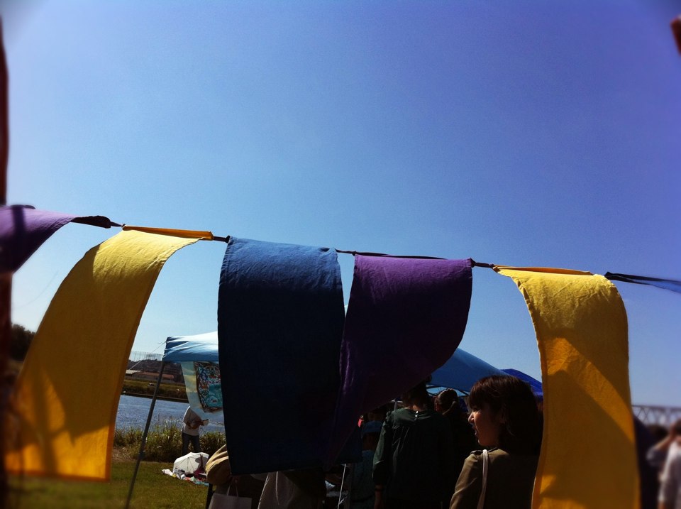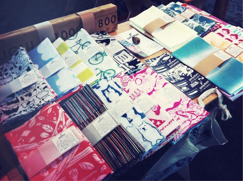 このイベントには、友人と活動しているprhythmという団体で出店して、みんなで作った手ぬぐいや軍手などのグッズを販売しました。