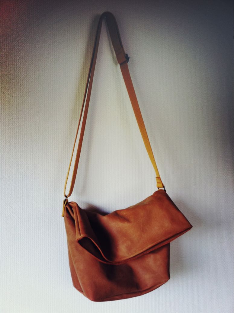 素材は牛革で小さい紙袋ぐらいのサイズ、閉じ口はマグネットになっています。